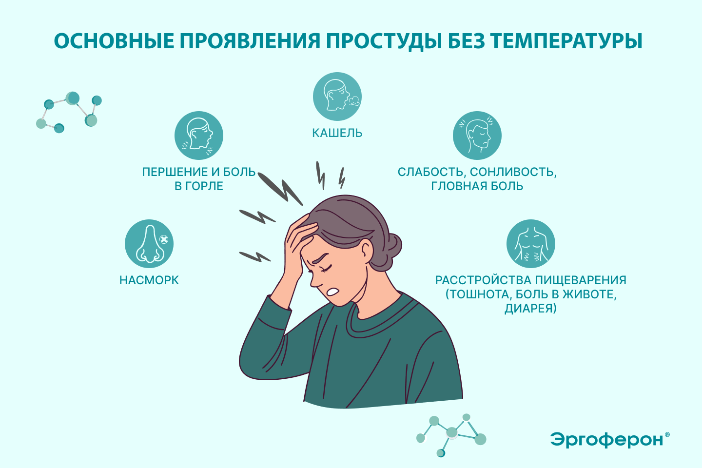 Поражение верхних дыхательных путей при простуде проявляется такими симптомами, как: